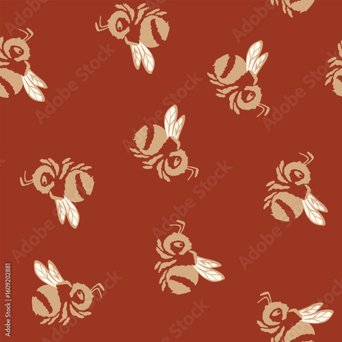 Seamless pattern with bees. Small wasp. Vector illustration. Design for invitation, cards, textile, fabric. Doodle style.