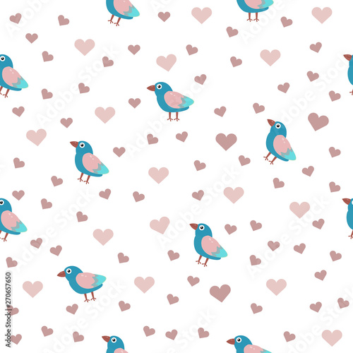 seamless pattern with birds and hearts for Valentine holiday