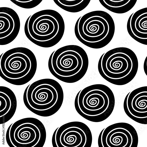 Seamless pattern with black and white spirals