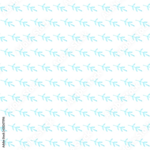 Seamless pattern with blue twigs. Cute simple background. Repeat pattern. Light background with watercolor leaves.