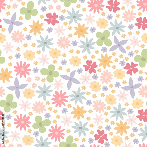 seamless pattern with cartoon flowers. colorful vector, hand drawing. design for fabric, print, textile, wrapper