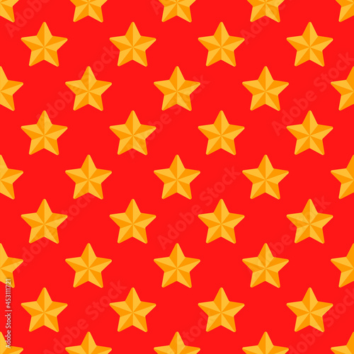 Seamless Pattern with Cartoon Gold Yellow Stars on Red Background. Abstract Holiday Wallpaper. Vector Illustration.