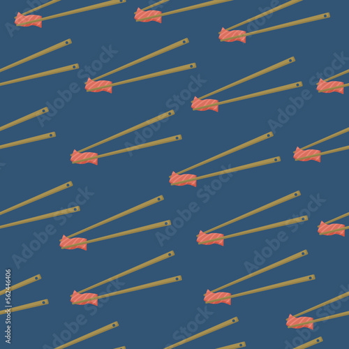 Seamless pattern with chopsticks with salmon. Asian food illustration