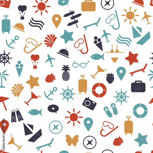 seamless pattern with colorful summer icons