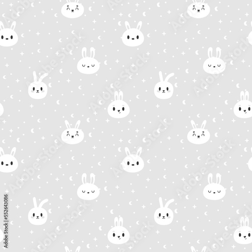 Seamless pattern with cute bunny. Hand drawn background with cartoon rabbits. Nursery style