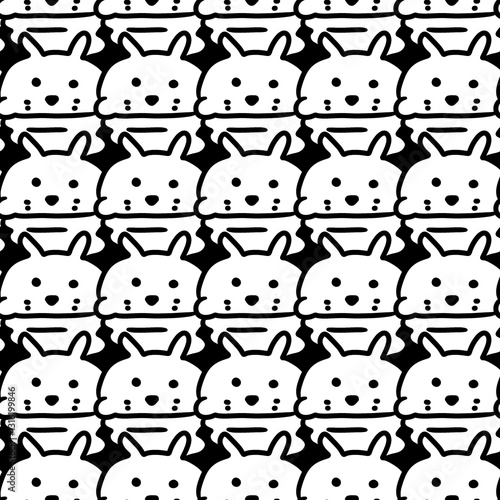 seamless pattern with cute cartoon bear head, hand drawn illustration.