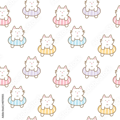 Seamless Pattern with Cute Cartoon Cat Illustration Design on White Background