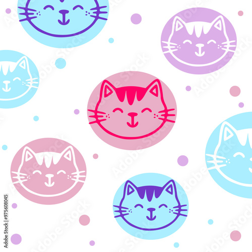 Seamless pattern with cute colorful Cats. Funny pet charactes Hand drawn vector illustration. Good for fabric, textile