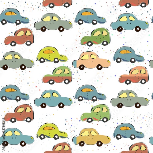 Seamless Pattern with Cute European Cars. Scandinavian Style