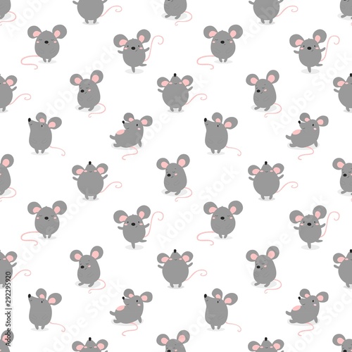 Seamless pattern with cute funny mouses in different poses in cartoon style. Vector illustration.