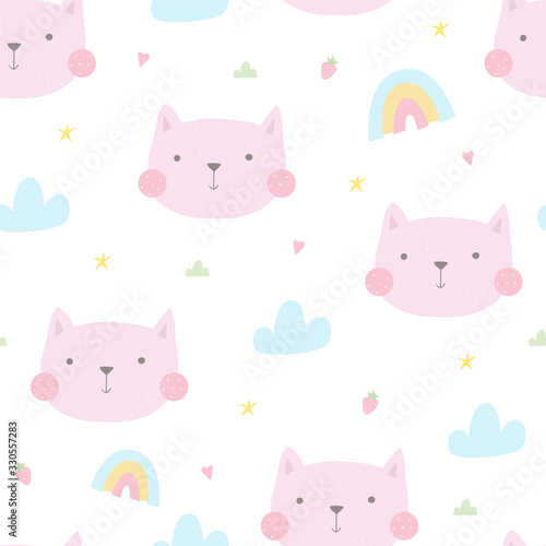 Seamless pattern with cute little cat. vector illustration. Vector print with kitten