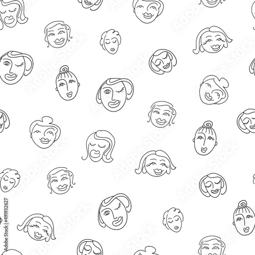 Seamless pattern with cute women's faces in doodle style. Vector illustration.
