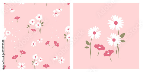 Seamless pattern with daisy flower and cute flower on pink background vector illustration. Daisy icon sign.