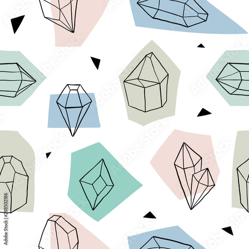 Seamless pattern with diamonds, jems, stones and abstract shapes