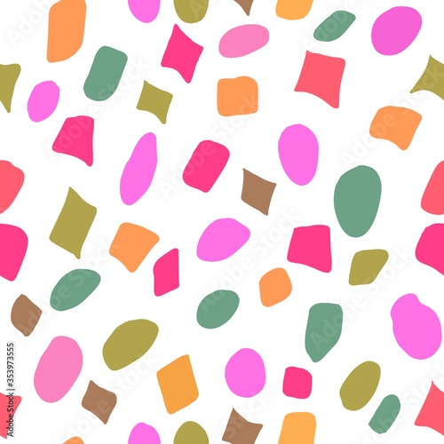 Seamless pattern with different multi coloured shapes hand drawn watercolor illustration on white background