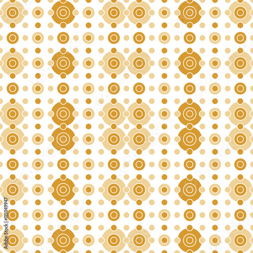 Seamless pattern with dots and circles. Light beige, brown and gold ornament. Decoration repeated pattern of rings and discs. Abstract circles and polka dot background.