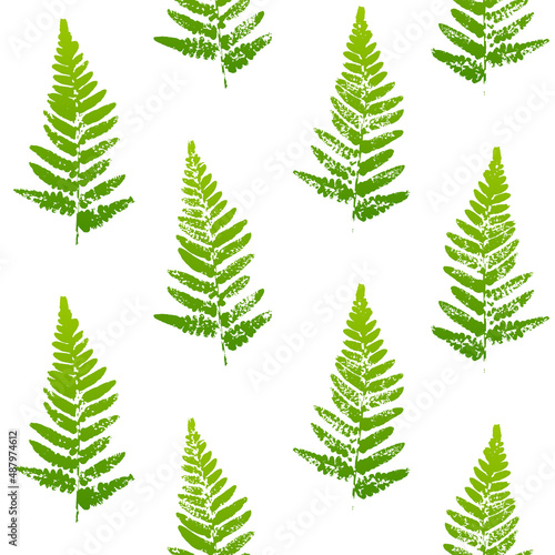Seamless pattern with fern leaves paint prints isolated on white background