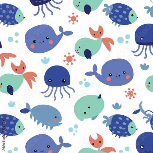 seamless pattern with fishes, seamless pattern with fish, seamless pattern with birds. Fish and Birds Designs for Fabric, Wallpaper, and Graphics