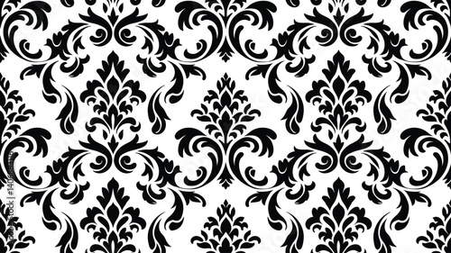 Seamless pattern with floral elements| Damask Seamless Vector Pattern| Hand drawing tile pattern| Black seamless floral Pattern Illustration on white Background