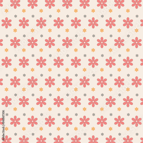 Seamless pattern with flowers isolated on beige background.Graphic vector illustration.