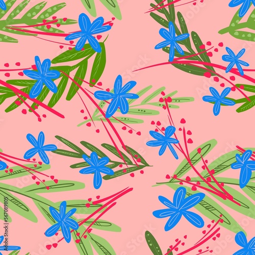 seamless pattern with flowers on pink