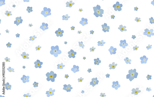 seamless pattern with forget-me-not flowers, delicate Myosotis flowers on a white background. Use for patterns on fabric, bed linen, advertising, posters, etc. Vector illustration
