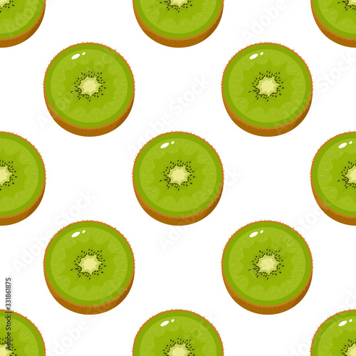 Seamless pattern with fresh half kiwi fruit on white background. Summer fruits for healthy lifestyle. Organic fruit. Cartoon style. Vector illustration for any design.