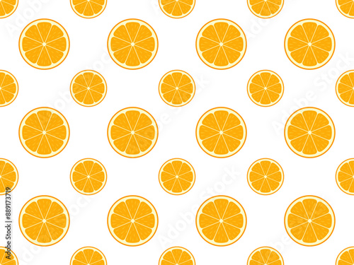 Seamless pattern with Fresh orange slices. Hand drawn trendy flat style for fabric, print on t-shirt, wallpaper. Slices of orange doodle style cheerful background. Vector illustration