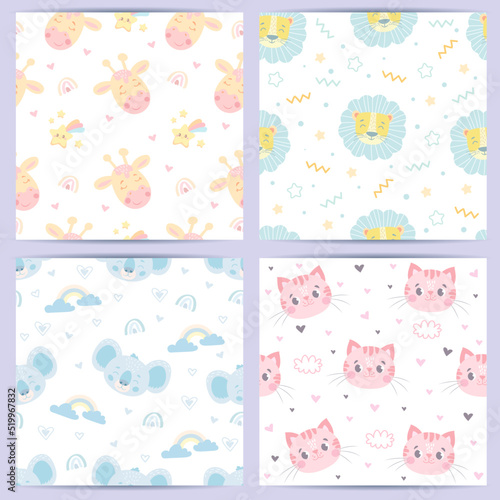 seamless pattern with funny animals for babies. vector illustration in pastel colors