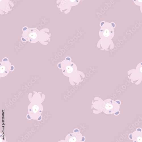 Seamless pattern with funny bear on a pink background. For baby textiles and linen, wrapping paper, notebook and phone covers. Vector illustration