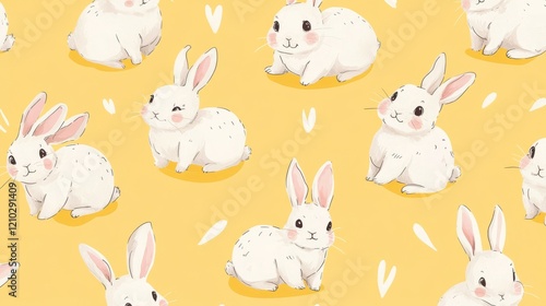 Seamless pattern with funny cartoon Bunnies. Hand-drawn illustration. Vector.