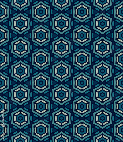 Seamless pattern with geometric blue tiles, illustration of a vintage antique tile design