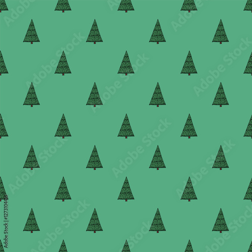 Seamless pattern with geometric minimal scandinavian Christmas tree doodle for decorative print, wrapping paper, greeting cards and fabric