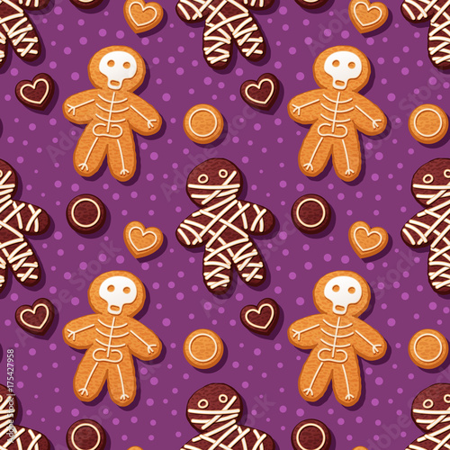 Seamless pattern with gingerbread men. Halloween vector illustration