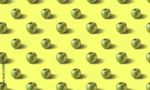Seamless pattern with green apples on a yellow background