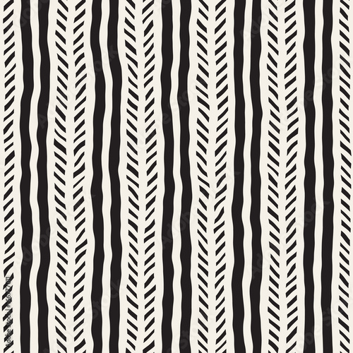 Seamless pattern with hand drawn brush strokes. Ink doodle illustration. Geometric monochrome vector pattern.