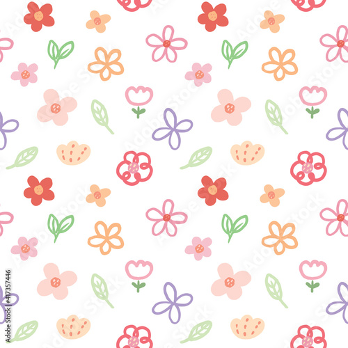 Seamless Pattern with Hand Drawn Flower Art Design on White Background
