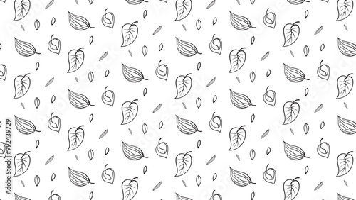 Seamless pattern with hand drawn leaves. Black and white vector illustration.