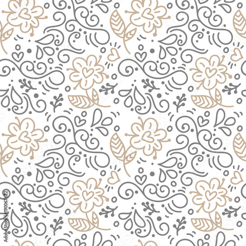 Seamless pattern with hand painted leaves in Scandinavian style on a white background. Vector illustration Valentines Day, wedding, birthday greeting card
