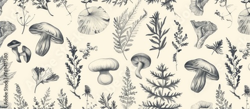 Seamless pattern with hand-drawn natural elements in a vintage style.