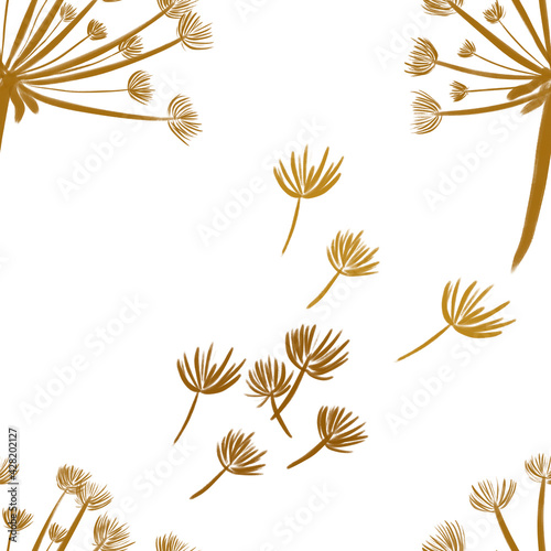seamless pattern with hand-drawn yellow with gradient dandelions on white background. packaging, wallpaper, textile, kitchen, utensil, fashion design