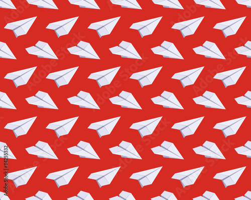 Seamless pattern with isometric paper planes against the red