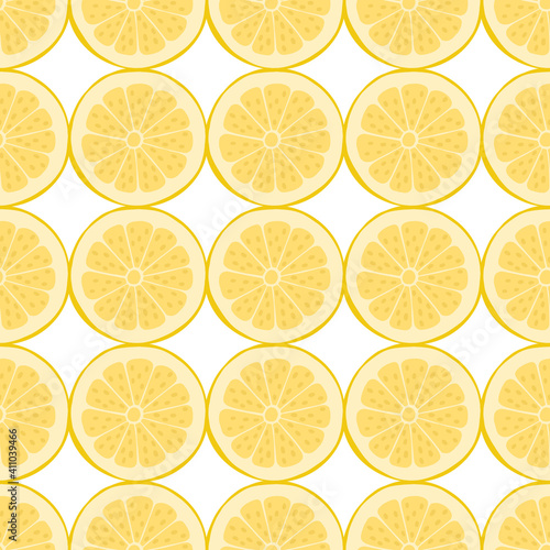 Seamless pattern with lemon slices. Citrus fruit. Healthy natural food, vitamins. Organic, eco. Drawn by hands. It can be used for printing on textiles, wallpapers.