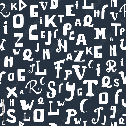 Seamless pattern with letters. Hand drawn alphabet. Cute backgro