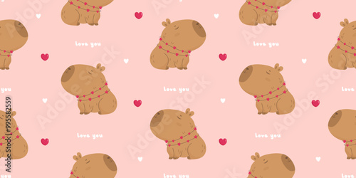 Seamless pattern with lovely capybara