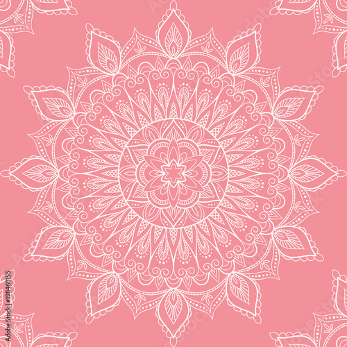 Seamless pattern with mandala ornament. Hand drawn vector illustration
