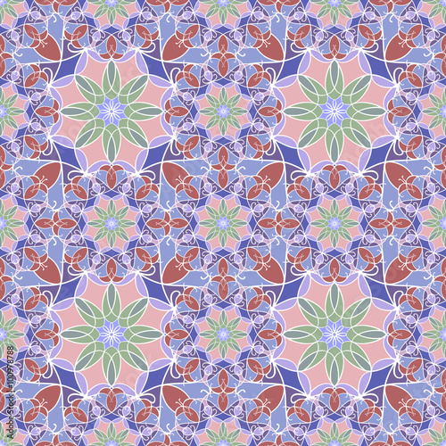 Seamless pattern with mandala round circular ornament, geometric floral pattern, decorative repeating fabric texture. Tribal ethnic motif, vector abstract background