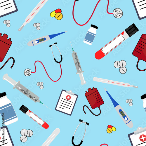 Seamless pattern with medical elements. Medicine vector seamless pattern. Healthcare illustration