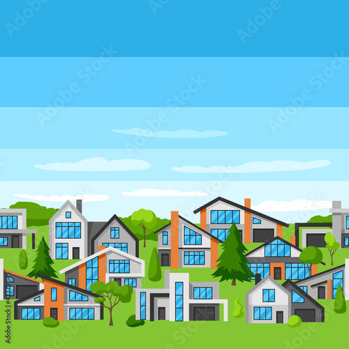 Seamless pattern with modern luxury houses. Real estate cottages.