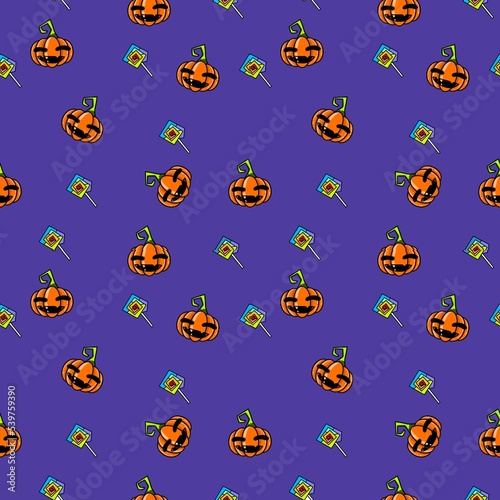 seamless pattern with monsters pumpkin Halloween candy background wallpaper illustration